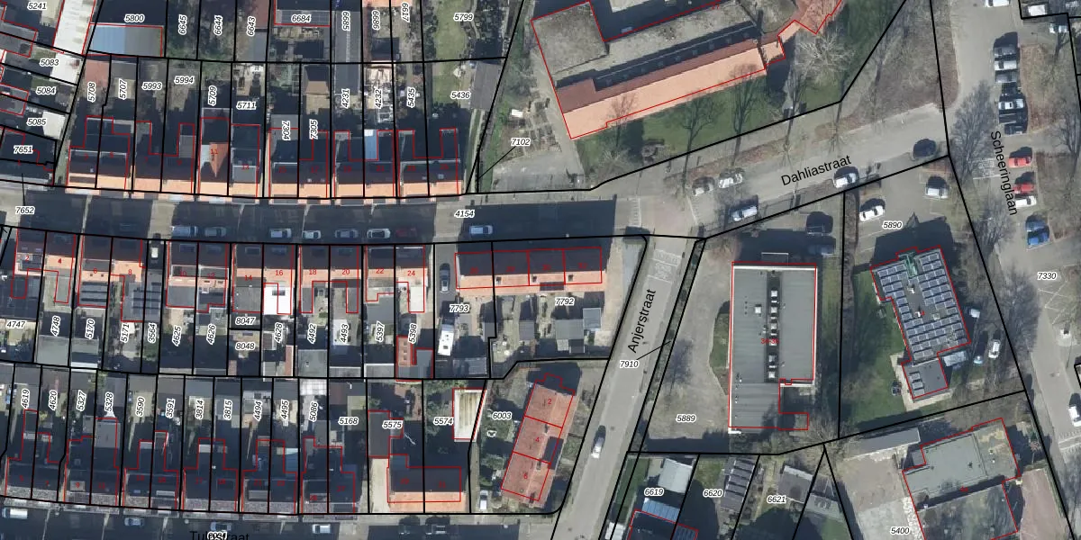 Dahliastraat 30 is gelegen op kadastraal perceel TIE00D7792. Deze kadastrale aanduiding is uniek en wordt gebruikt door het Kadaster om eigendomsrechten en andere zakelijke rechten vast te leggen. Het perceel maakt onderdeel uit van de kadastrale gemeente Tiel.