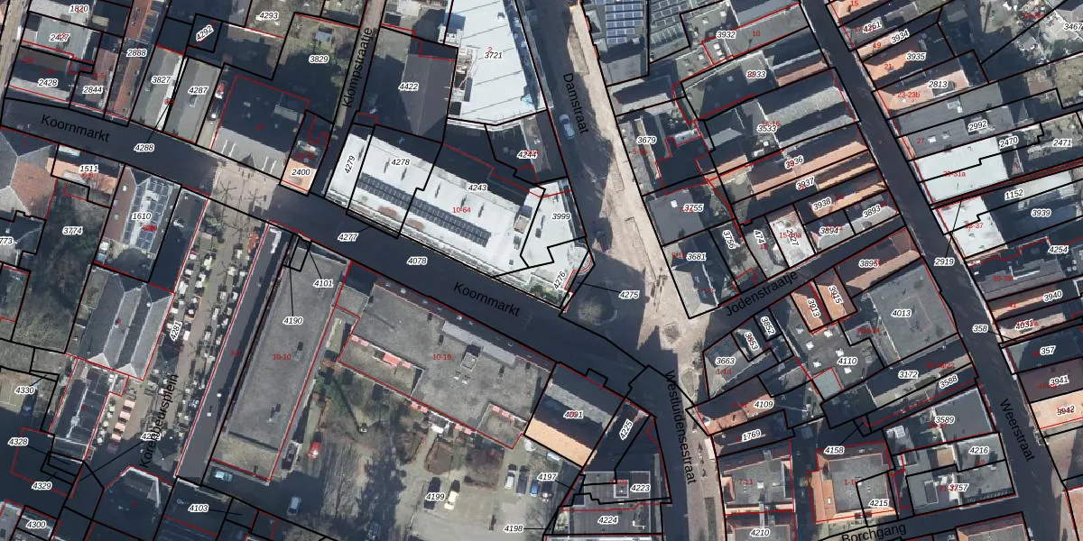 Het perceel waarop Damstraat 30 staat heeft een oppervlakte van 107 m². Dit is een middelgroot perceel. De perceeloppervlakte wordt geregistreerd door het Kadaster. Gedetailleerde informatie over de maten van dit perceel kunt u vinden in het rapport Kadastrale kaart met maatvoering van Damstraat 30.