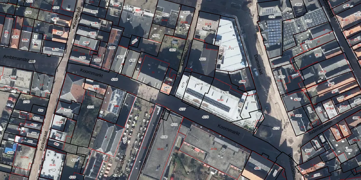Damstraat 44 is gelegen op kadastraal perceel TIE00E4279. Deze kadastrale aanduiding is uniek en wordt gebruikt door het Kadaster om eigendomsrechten en andere zakelijke rechten vast te leggen. Het perceel maakt onderdeel uit van de kadastrale gemeente Tiel.