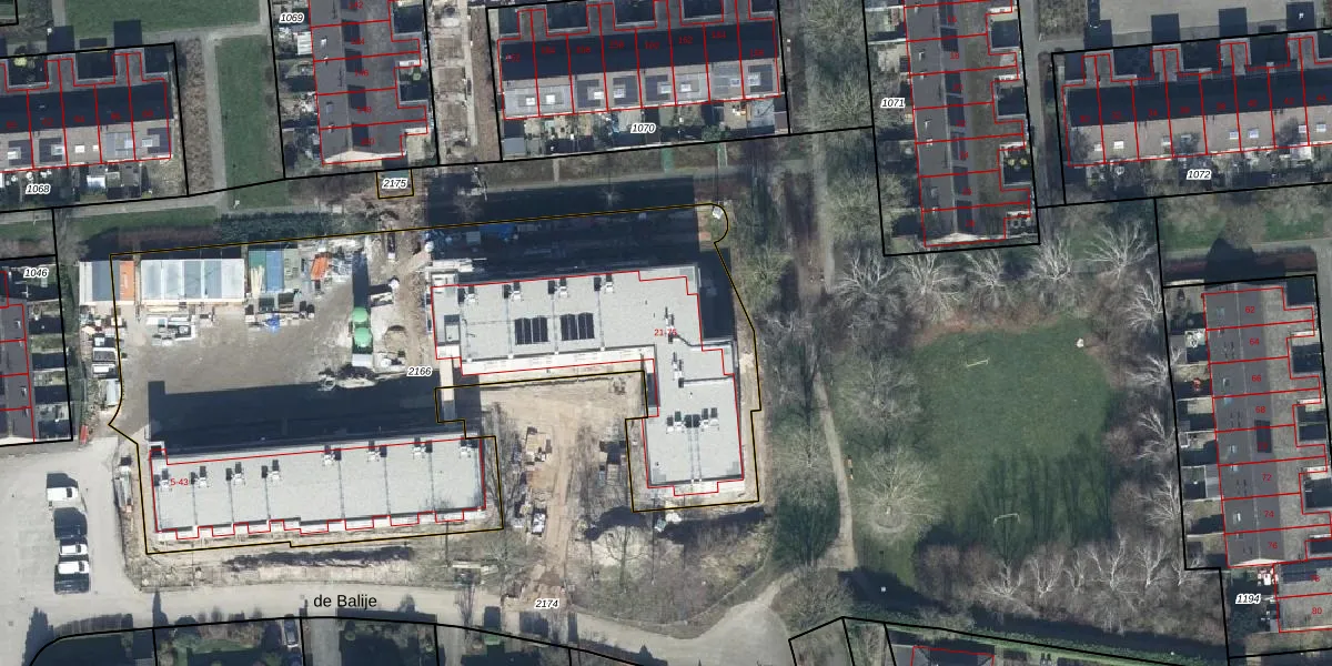 de Balije 21 is gelegen op kadastraal perceel TIE00G2166. Deze kadastrale aanduiding is uniek en wordt gebruikt door het Kadaster om eigendomsrechten en andere zakelijke rechten vast te leggen. Het perceel maakt onderdeel uit van de kadastrale gemeente Tiel.
