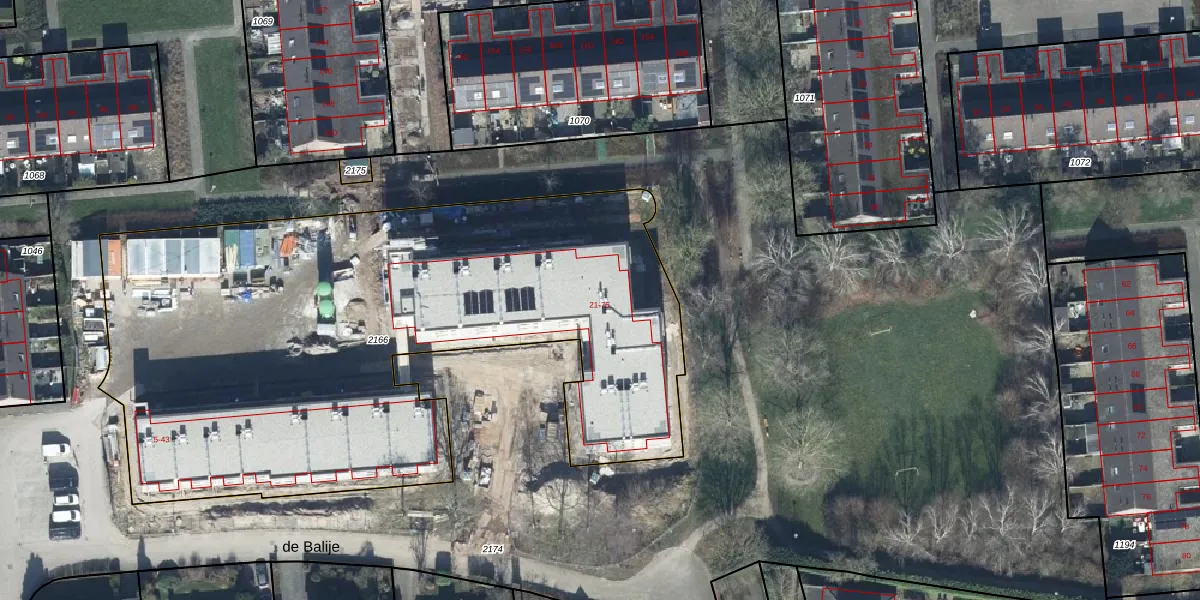 de Balije 53 is gelegen op kadastraal perceel TIE00G2166. Deze kadastrale aanduiding is uniek en wordt gebruikt door het Kadaster om eigendomsrechten en andere zakelijke rechten vast te leggen. Het perceel maakt onderdeel uit van de kadastrale gemeente Tiel.