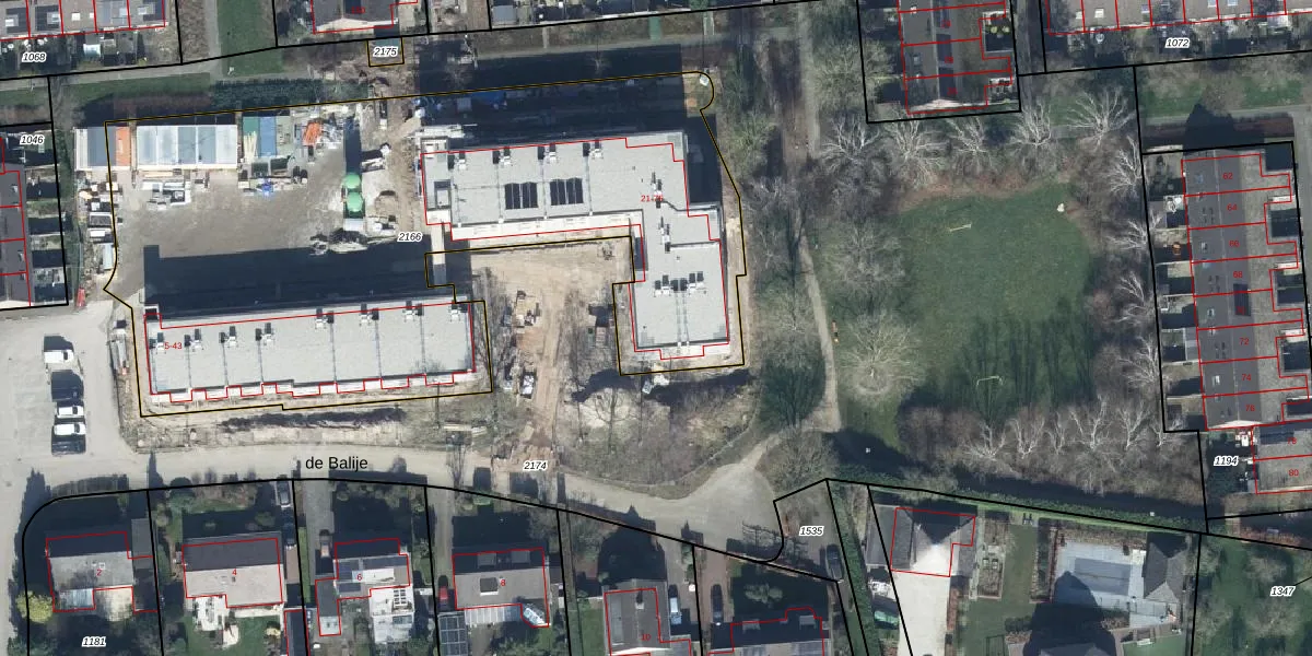 Het perceel waarop de Balije 57 staat heeft een oppervlakte van 3742 m². Dit is een zeer groot perceel. De perceeloppervlakte wordt geregistreerd door het Kadaster. Gedetailleerde informatie over de maten van dit perceel kunt u vinden in het rapport Kadastrale kaart met maatvoering van de Balije 57.