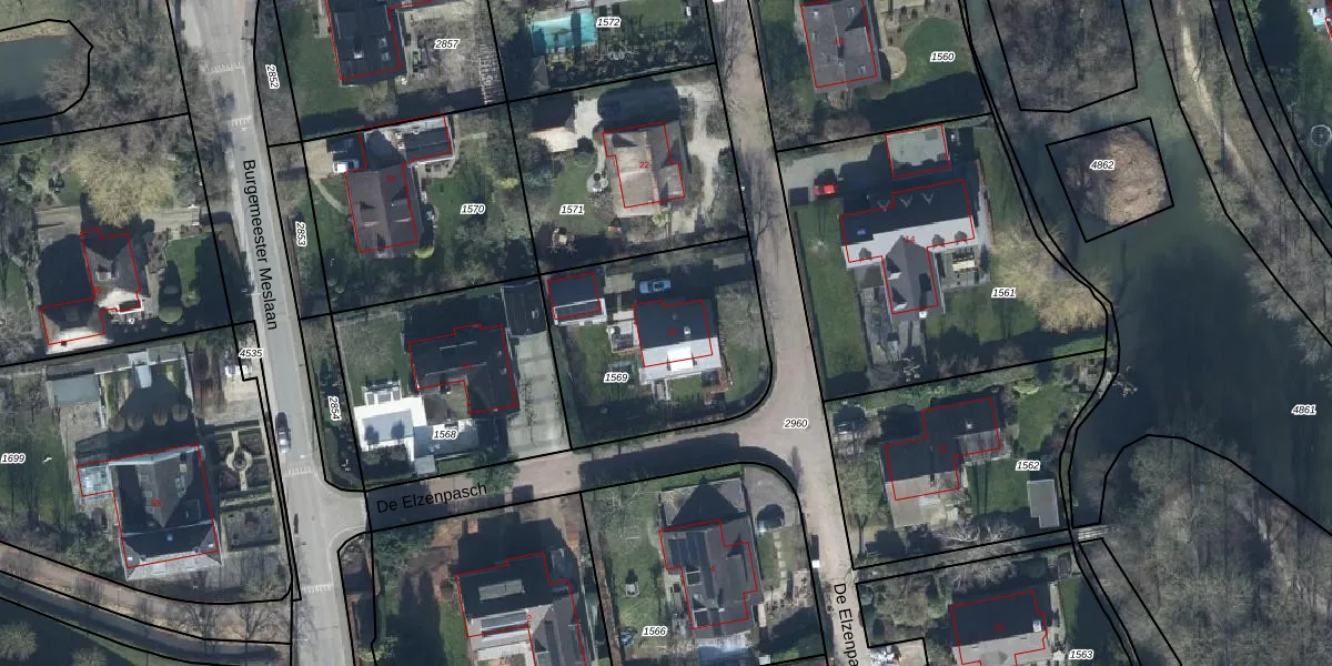 Het perceel waarop De Elzenpasch 24 staat heeft een oppervlakte van 825 m². Dit is een groot perceel. De perceeloppervlakte wordt geregistreerd door het Kadaster. Gedetailleerde informatie over de maten van dit perceel kunt u vinden in het rapport Kadastrale kaart met maatvoering van De Elzenpasch 24.