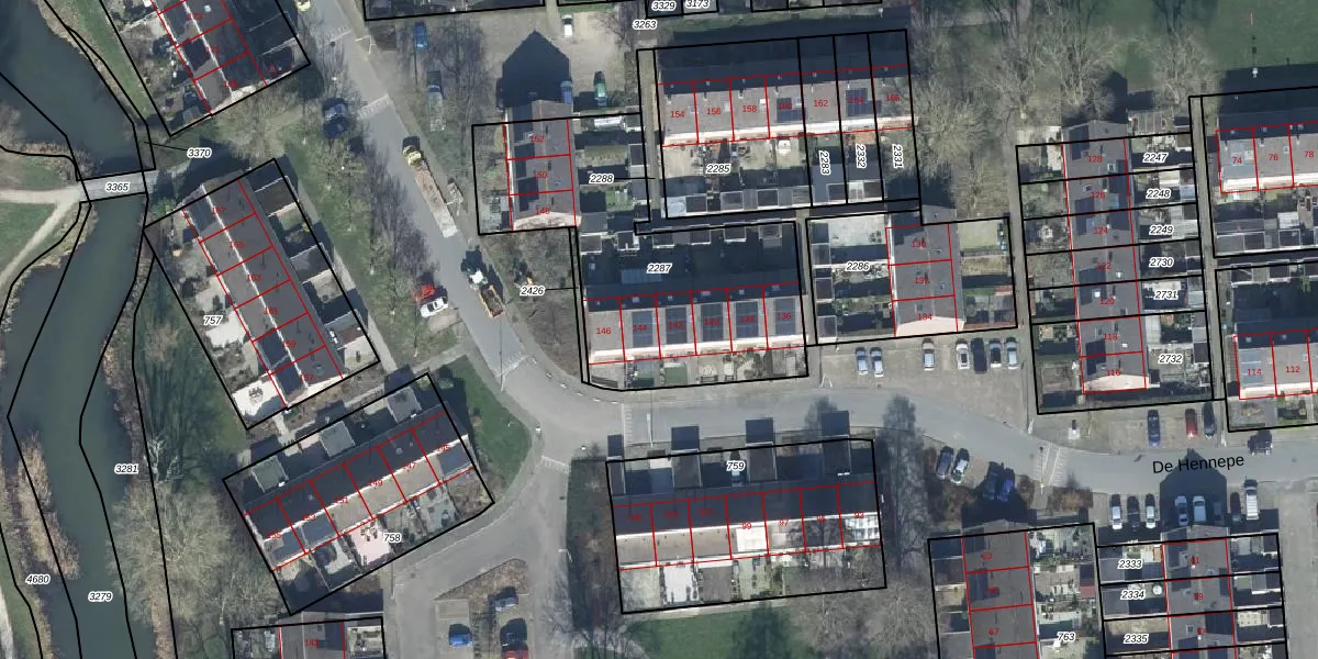 De Hennepe 142 is gelegen op kadastraal perceel TIE00L2287. Deze kadastrale aanduiding is uniek en wordt gebruikt door het Kadaster om eigendomsrechten en andere zakelijke rechten vast te leggen. Het perceel maakt onderdeel uit van de kadastrale gemeente Tiel.