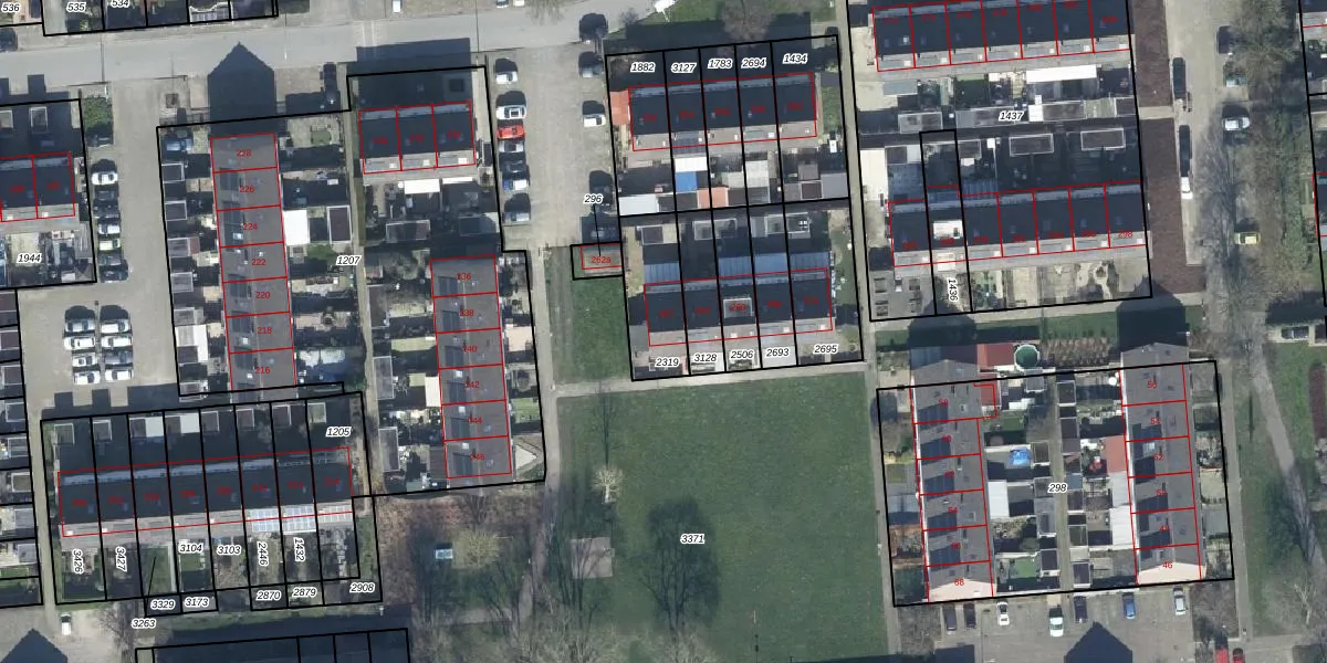 Gebruik de zoekbalk of klik op een perceel voor informatie over de adressen binnen dit perceel.