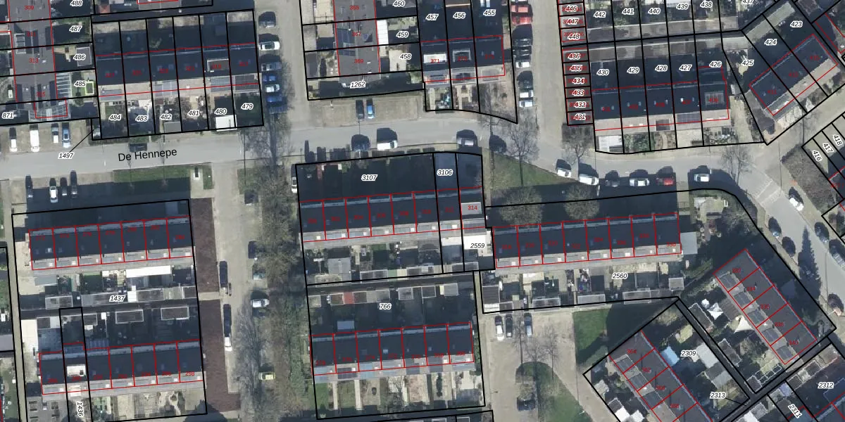 Het perceel waarop De Hennepe 310 staat heeft een oppervlakte van 926 m². Dit is een groot perceel. De perceeloppervlakte wordt geregistreerd door het Kadaster. Gedetailleerde informatie over de maten van dit perceel kunt u vinden in het rapport Kadastrale kaart met maatvoering van De Hennepe 310.