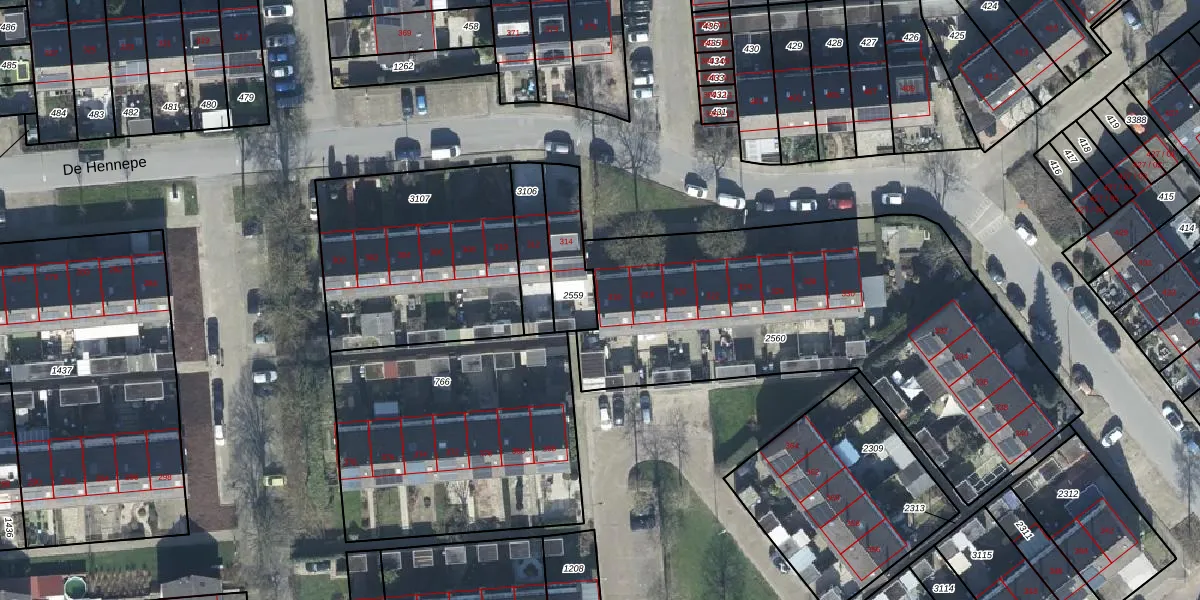 De Hennepe 316 is gelegen op kadastraal perceel TIE00L2560. Deze kadastrale aanduiding is uniek en wordt gebruikt door het Kadaster om eigendomsrechten en andere zakelijke rechten vast te leggen. Het perceel maakt onderdeel uit van de kadastrale gemeente Tiel.