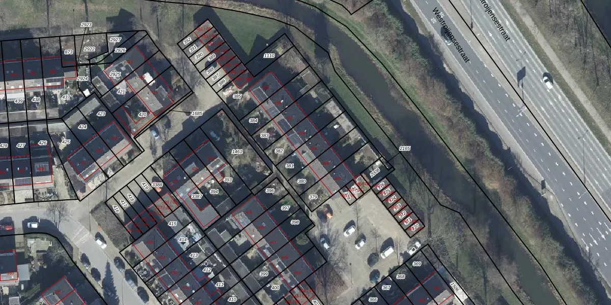 Gebruik de zoekbalk of klik op een perceel voor informatie over de adressen binnen dit perceel.