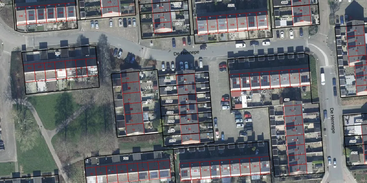 De Hennepe 59 is gelegen op kadastraal perceel TIE00L2334. Deze kadastrale aanduiding is uniek en wordt gebruikt door het Kadaster om eigendomsrechten en andere zakelijke rechten vast te leggen. Het perceel maakt onderdeel uit van de kadastrale gemeente Tiel.