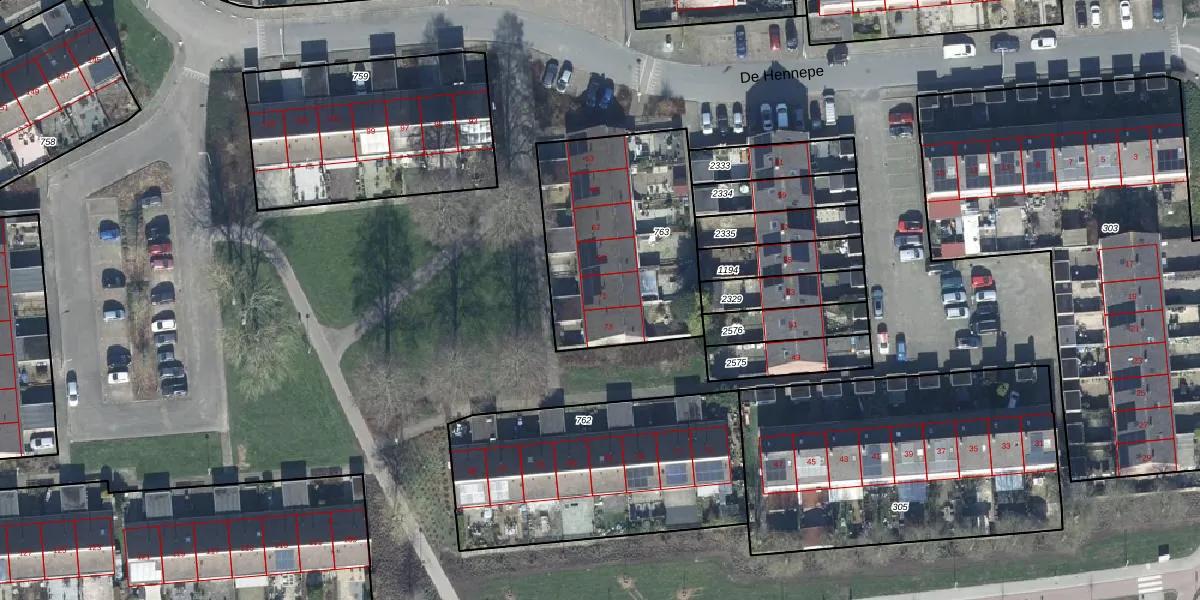 De Hennepe 71 is gelegen op kadastraal perceel TIE00L763. Deze kadastrale aanduiding is uniek en wordt gebruikt door het Kadaster om eigendomsrechten en andere zakelijke rechten vast te leggen. Het perceel maakt onderdeel uit van de kadastrale gemeente Tiel.
