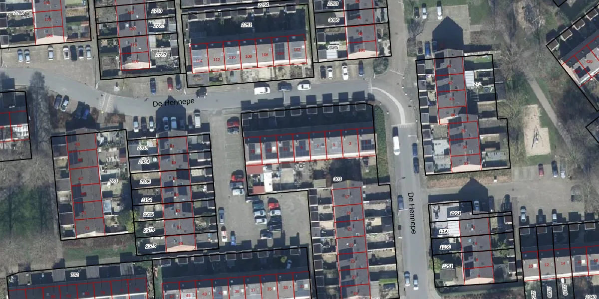 De Hennepe 9 is gelegen op kadastraal perceel TIE00L303. Deze kadastrale aanduiding is uniek en wordt gebruikt door het Kadaster om eigendomsrechten en andere zakelijke rechten vast te leggen. Het perceel maakt onderdeel uit van de kadastrale gemeente Tiel.
