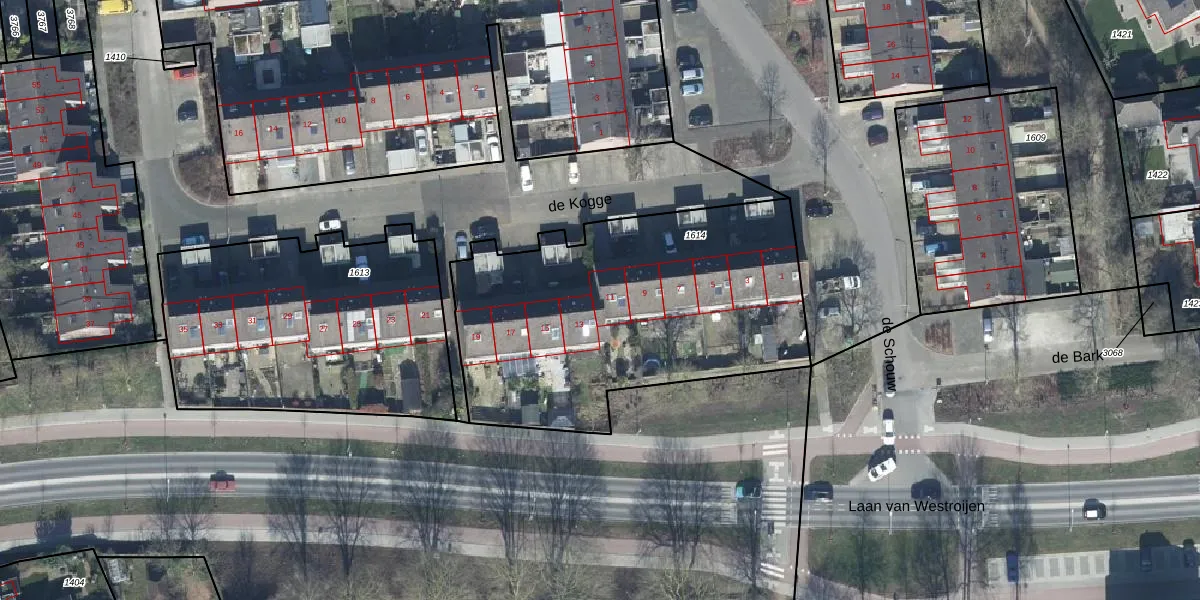 Het perceel waarop de Kogge 11 staat heeft een oppervlakte van 1682 m². Dit is een zeer groot perceel. De perceeloppervlakte wordt geregistreerd door het Kadaster. Gedetailleerde informatie over de maten van dit perceel kunt u vinden in het rapport Kadastrale kaart met maatvoering van de Kogge 11.
