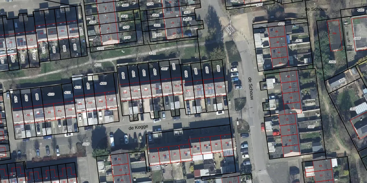Gebruik de zoekbalk of klik op een perceel voor informatie over de adressen binnen dit perceel.