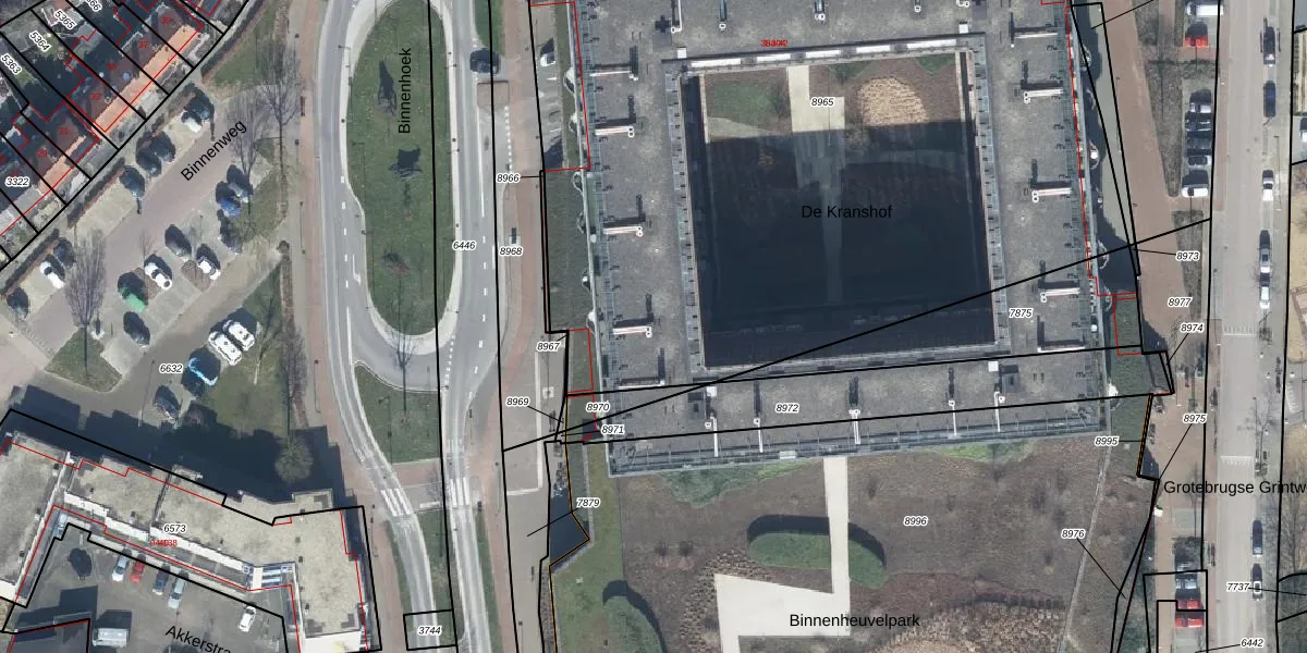 Het perceel waarop De Kranshof 102 staat heeft een oppervlakte van 5840 m². Dit is een zeer groot perceel. De perceeloppervlakte wordt geregistreerd door het Kadaster. Gedetailleerde informatie over de maten van dit perceel kunt u vinden in het rapport Kadastrale kaart met maatvoering van De Kranshof 102.