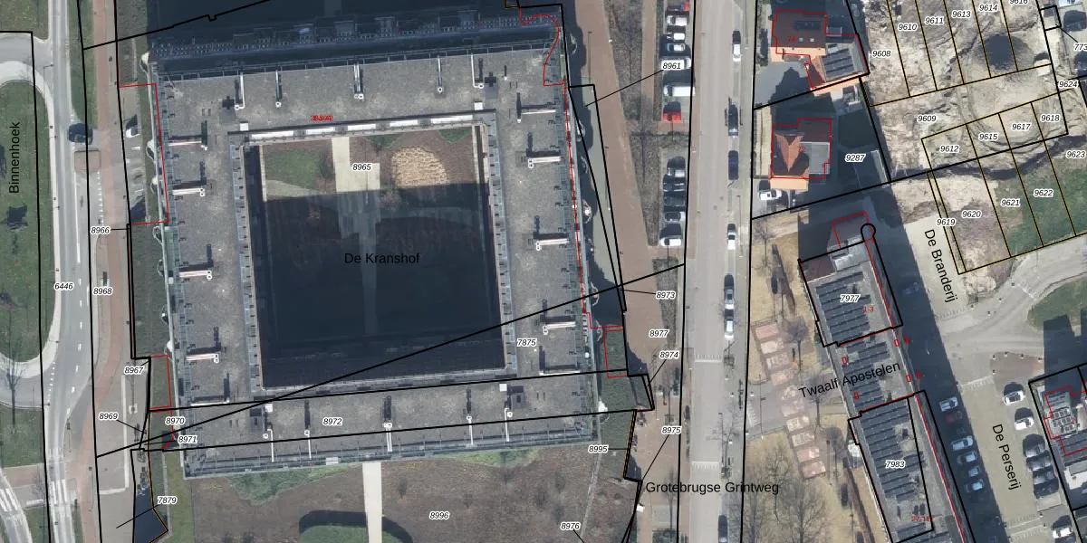 Het perceel waarop De Kranshof 122 staat heeft een oppervlakte van 5840 m². Dit is een zeer groot perceel. De perceeloppervlakte wordt geregistreerd door het Kadaster. Gedetailleerde informatie over de maten van dit perceel kunt u vinden in het rapport Kadastrale kaart met maatvoering van De Kranshof 122.