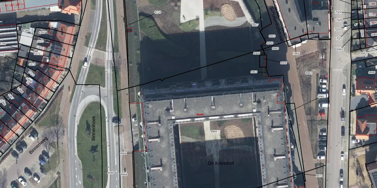 Het perceel waarop De Kranshof 198 staat heeft een oppervlakte van 5840 m². Dit is een zeer groot perceel. De perceeloppervlakte wordt geregistreerd door het Kadaster. Gedetailleerde informatie over de maten van dit perceel kunt u vinden in het rapport Kadastrale kaart met maatvoering van De Kranshof 198.