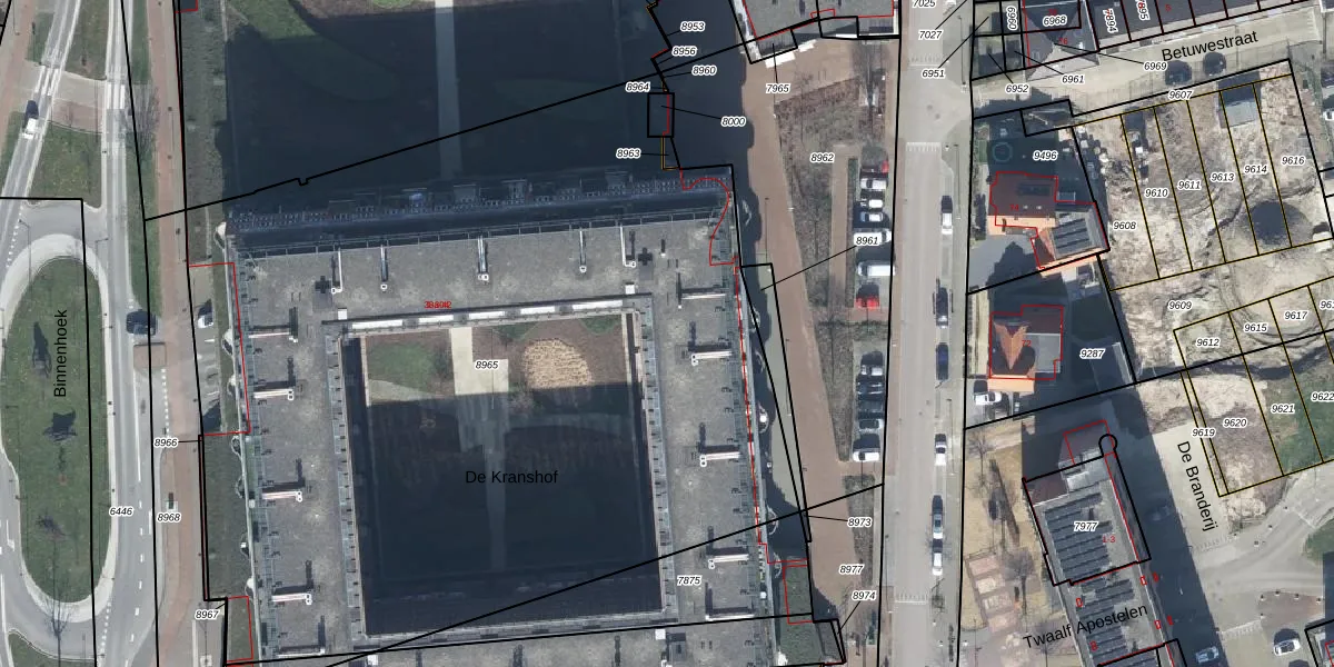 Het adres ligt op het perceel TIE00-C-8965, dat zich in de kadastrale gemeente Tiel bevindt. De oppervlakte van het perceel is 5840 m². Dat is groter dan gemiddeld in Tiel, waar de gemiddelde perceeloppervlakte op 1547,46 m² ligt. De grootste perceeloppervlakte in de kadastrale gemeente is 26,3 ha. De kleinste oppervlakte bedraagt 0 m². Op het perceel liggen in totaal 117 adressen. In de Basisregistratie Kadaster (BRK) werden de grenzen van het perceel geregistreerd op 04-10-2021.