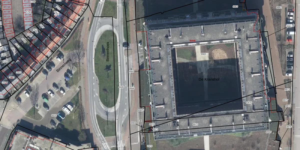Het perceel waarop De Kranshof 300 staat heeft een oppervlakte van 5840 m². Dit is een zeer groot perceel. De perceeloppervlakte wordt geregistreerd door het Kadaster. Gedetailleerde informatie over de maten van dit perceel kunt u vinden in het rapport Kadastrale kaart met maatvoering van De Kranshof 300.