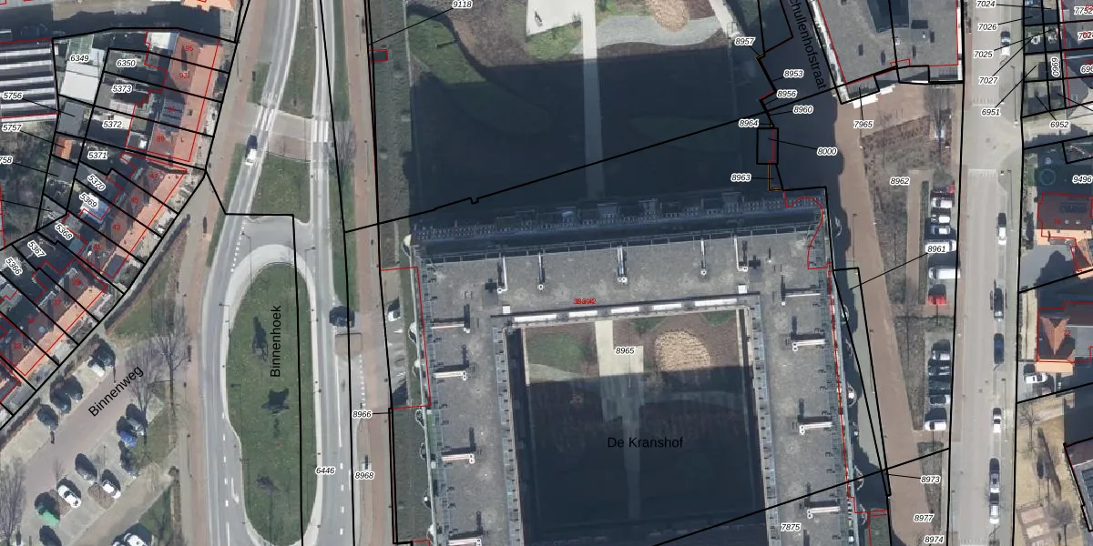 Het perceel waarop De Kranshof 34 staat heeft een oppervlakte van 5840 m². Dit is een zeer groot perceel. De perceeloppervlakte wordt geregistreerd door het Kadaster. Gedetailleerde informatie over de maten van dit perceel kunt u vinden in het rapport Kadastrale kaart met maatvoering van De Kranshof 34.