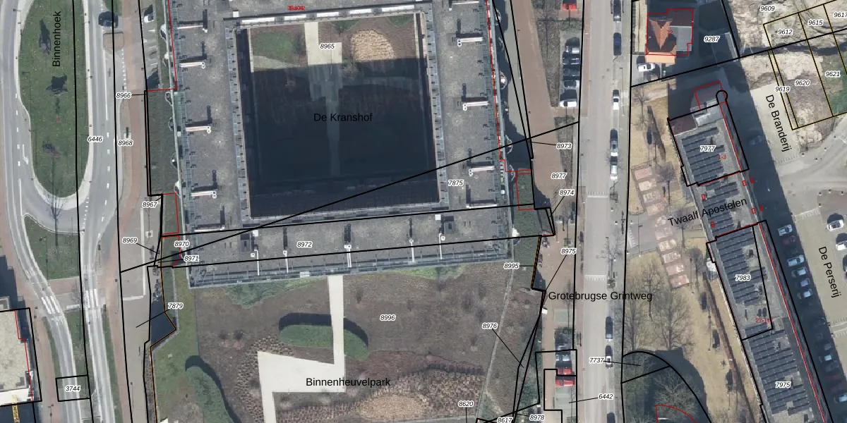 Het perceel waarop De Kranshof 62 staat heeft een oppervlakte van 507 m². Dit is een groot perceel. De perceeloppervlakte wordt geregistreerd door het Kadaster. Gedetailleerde informatie over de maten van dit perceel kunt u vinden in het rapport Kadastrale kaart met maatvoering van De Kranshof 62.