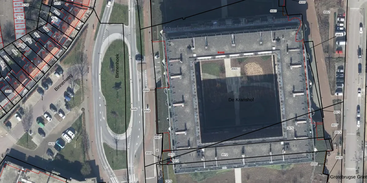 Het perceel waarop De Kranshof 96 staat heeft een oppervlakte van 5840 m². Dit is een zeer groot perceel. De perceeloppervlakte wordt geregistreerd door het Kadaster. Gedetailleerde informatie over de maten van dit perceel kunt u vinden in het rapport Kadastrale kaart met maatvoering van De Kranshof 96.