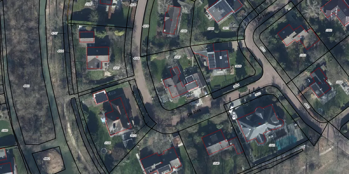 Het perceel waarop De Nes 13 staat heeft een oppervlakte van 900 m². Dit is een groot perceel. De perceeloppervlakte wordt geregistreerd door het Kadaster. Gedetailleerde informatie over de maten van dit perceel kunt u vinden in het rapport Kadastrale kaart met maatvoering van De Nes 13.