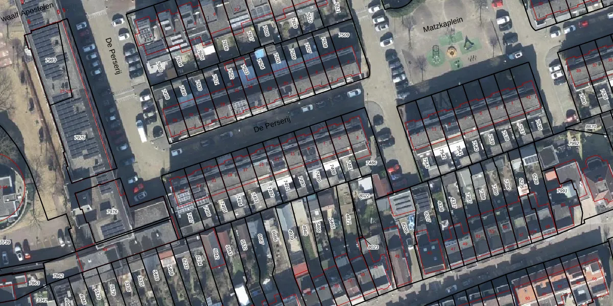 Het perceel waarop De Perserij 9 staat heeft een oppervlakte van 115 m². Dit is een middelgroot perceel. De perceeloppervlakte wordt geregistreerd door het Kadaster. Gedetailleerde informatie over de maten van dit perceel kunt u vinden in het rapport Kadastrale kaart met maatvoering van De Perserij 9.