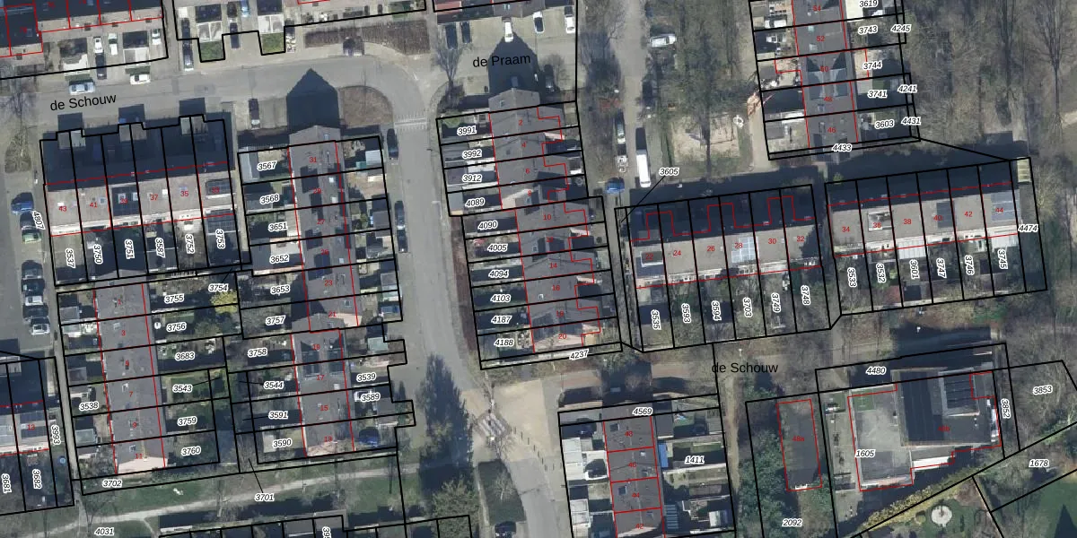 Het perceel waarop de Praam 14 staat heeft een oppervlakte van 118 m². Dit is een middelgroot perceel. De perceeloppervlakte wordt geregistreerd door het Kadaster. Gedetailleerde informatie over de maten van dit perceel kunt u vinden in het rapport Kadastrale kaart met maatvoering van de Praam 14.