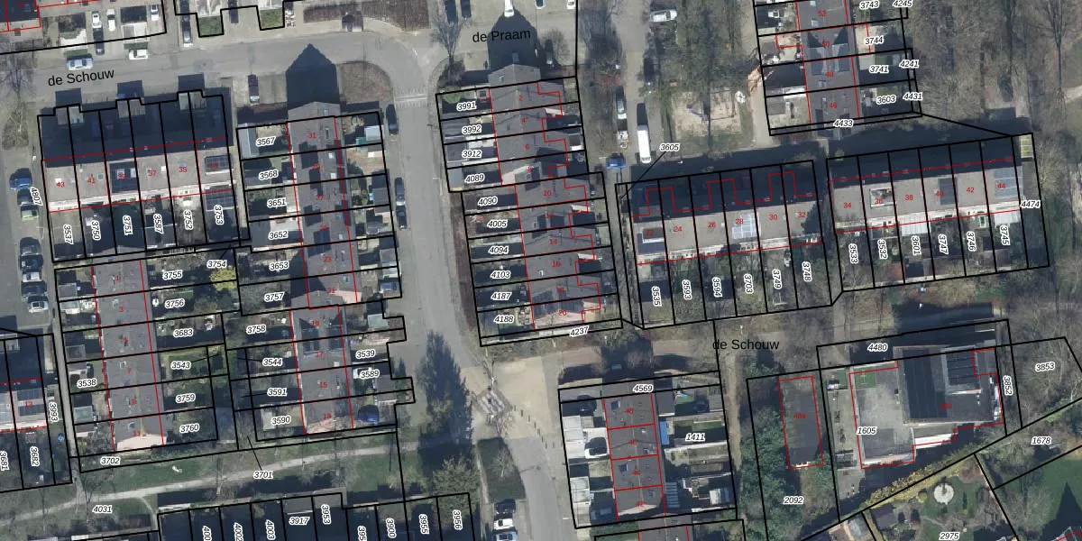 Het perceel waarop de Praam 16 staat heeft een oppervlakte van 118 m². Dit is een middelgroot perceel. De perceeloppervlakte wordt geregistreerd door het Kadaster. Gedetailleerde informatie over de maten van dit perceel kunt u vinden in het rapport Kadastrale kaart met maatvoering van de Praam 16.