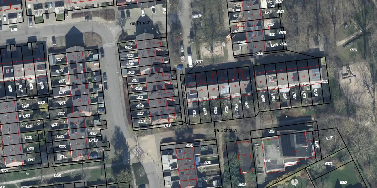 Het perceel waarop de Praam 22 staat heeft een oppervlakte van 161 m². Dit is een middelgroot perceel. De perceeloppervlakte wordt geregistreerd door het Kadaster. Gedetailleerde informatie over de maten van dit perceel kunt u vinden in het rapport Kadastrale kaart met maatvoering van de Praam 22.