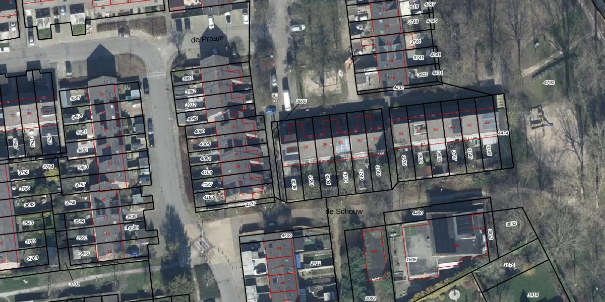 Het perceel waarop de Praam 24 staat heeft een oppervlakte van 155 m². Dit is een middelgroot perceel. De perceeloppervlakte wordt geregistreerd door het Kadaster. Gedetailleerde informatie over de maten van dit perceel kunt u vinden in het rapport Kadastrale kaart met maatvoering van de Praam 24.