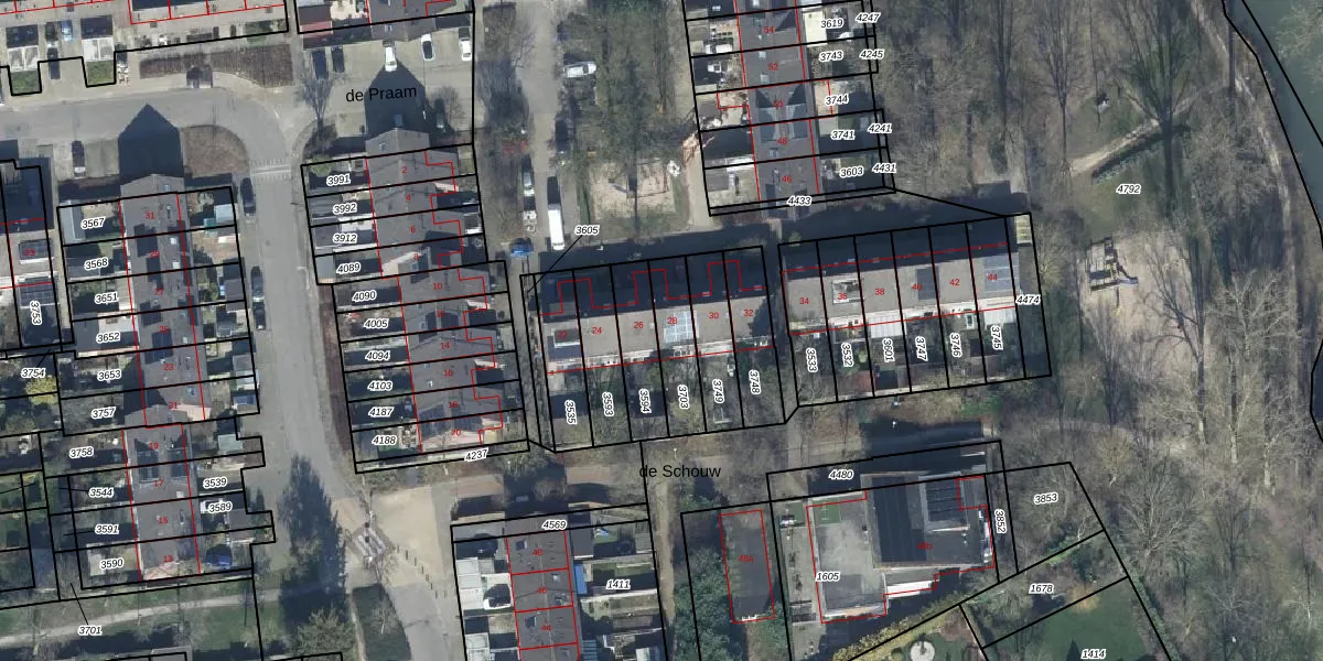 Het perceel waarop de Praam 28 staat heeft een oppervlakte van 155 m². Dit is een middelgroot perceel. De perceeloppervlakte wordt geregistreerd door het Kadaster. Gedetailleerde informatie over de maten van dit perceel kunt u vinden in het rapport Kadastrale kaart met maatvoering van de Praam 28.
