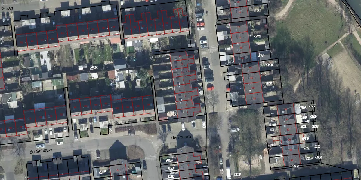 de Praam 7 is gelegen op kadastraal perceel TIE00H1301. Deze kadastrale aanduiding is uniek en wordt gebruikt door het Kadaster om eigendomsrechten en andere zakelijke rechten vast te leggen. Het perceel maakt onderdeel uit van de kadastrale gemeente Tiel.