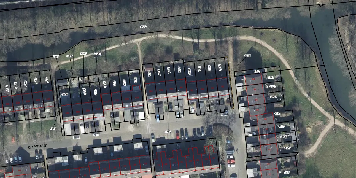 Het perceel waarop de Praam 98 staat heeft een oppervlakte van 170 m². Dit is een middelgroot perceel. De perceeloppervlakte wordt geregistreerd door het Kadaster. Gedetailleerde informatie over de maten van dit perceel kunt u vinden in het rapport Kadastrale kaart met maatvoering van de Praam 98.