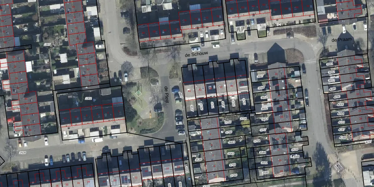 Het perceel waarop de Schouw 43 staat heeft een oppervlakte van 165 m². Dit is een middelgroot perceel. De perceeloppervlakte wordt geregistreerd door het Kadaster. Gedetailleerde informatie over de maten van dit perceel kunt u vinden in het rapport Kadastrale kaart met maatvoering van de Schouw 43.
