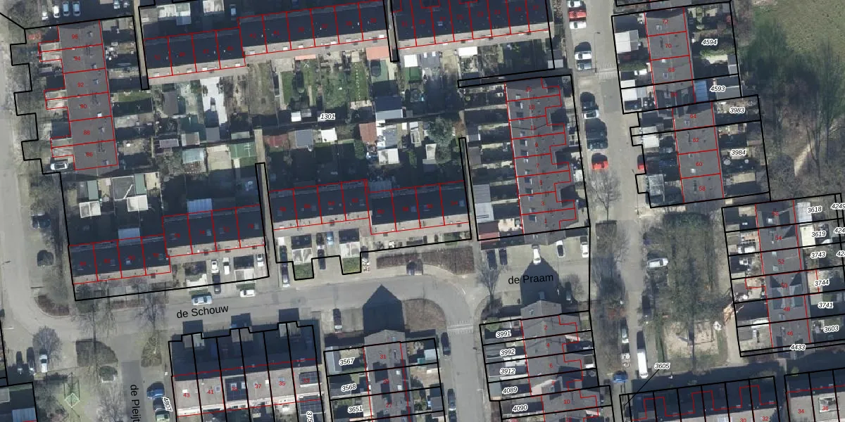 de Schouw 56 is gelegen op kadastraal perceel TIE00H1301. Deze kadastrale aanduiding is uniek en wordt gebruikt door het Kadaster om eigendomsrechten en andere zakelijke rechten vast te leggen. Het perceel maakt onderdeel uit van de kadastrale gemeente Tiel.