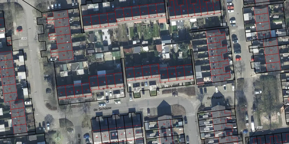 de Schouw 64 is gelegen op kadastraal perceel TIE00H1301. Deze kadastrale aanduiding is uniek en wordt gebruikt door het Kadaster om eigendomsrechten en andere zakelijke rechten vast te leggen. Het perceel maakt onderdeel uit van de kadastrale gemeente Tiel.