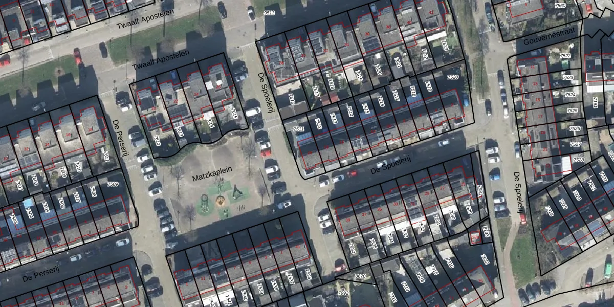 De Spoelerij 20 is gelegen op kadastraal perceel TIE00C7511. Deze kadastrale aanduiding is uniek en wordt gebruikt door het Kadaster om eigendomsrechten en andere zakelijke rechten vast te leggen. Het perceel maakt onderdeel uit van de kadastrale gemeente Tiel.