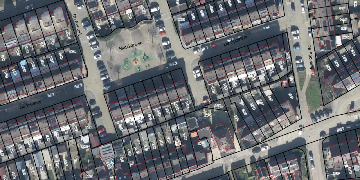 Het perceel waarop De Spoelerij 41 staat heeft een oppervlakte van 166 m². Dit is een middelgroot perceel. De perceeloppervlakte wordt geregistreerd door het Kadaster. Gedetailleerde informatie over de maten van dit perceel kunt u vinden in het rapport Kadastrale kaart met maatvoering van De Spoelerij 41.