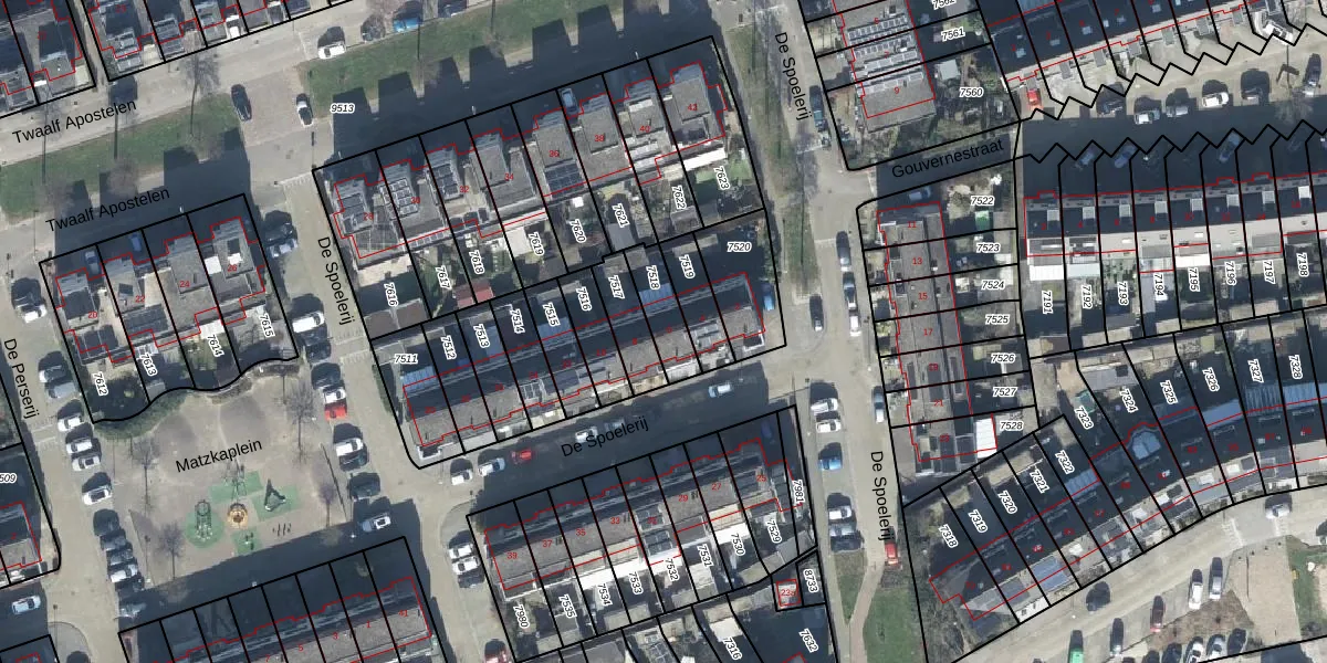 De Spoelerij 6 is gelegen op kadastraal perceel TIE00C7518. Deze kadastrale aanduiding is uniek en wordt gebruikt door het Kadaster om eigendomsrechten en andere zakelijke rechten vast te leggen. Het perceel maakt onderdeel uit van de kadastrale gemeente Tiel.