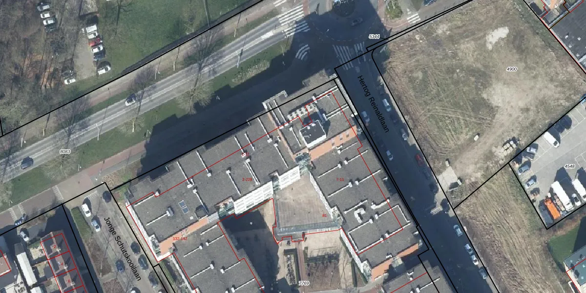 Het adres ligt op het perceel TIE00-D-7769, dat zich in de kadastrale gemeente Tiel bevindt. Het perceel is met 9636 m² relatief groot. Het gemiddelde ligt in de kadastrale gemeente Tiel op 1546,7 m². Het kleinste perceel in de kadastrale gemeente is 0 m² groot. De grootste perceeloppervlakte is 26,3 ha. Er zijn 200 adressen aanwezig op het perceel. De huidige grenzen van het perceel zijn digitaal in de Basisregistratie Kadaster (BRK) geregistreerd op 25-06-2018.
