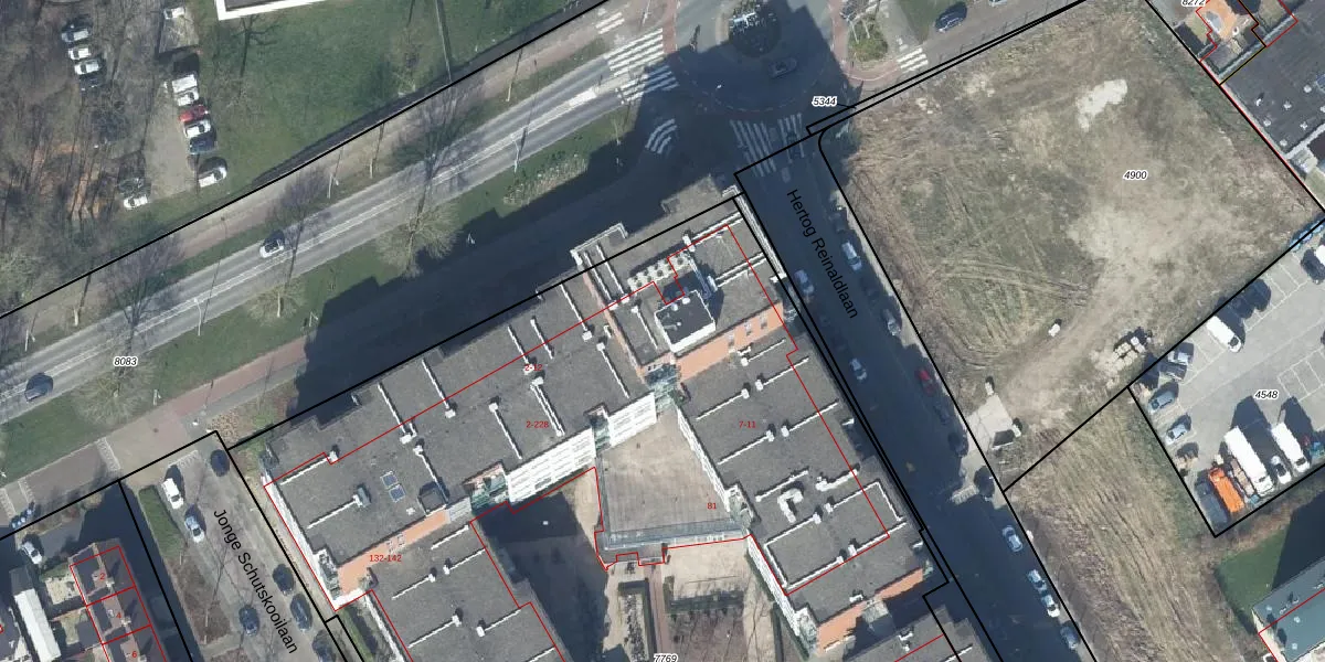 Het adres ligt op het perceel TIE00-D-7769, dat zich in de kadastrale gemeente Tiel bevindt. Het perceel is met 9636 m² relatief groot. Het gemiddelde ligt in de kadastrale gemeente Tiel op 1546,7 m². Het grootste perceel in de kadastrale gemeente is 26,3 ha. Het kleinste perceel heeft een oppervlakte van 0 m². Er zijn 200 adressen aanwezig op het perceel. In de Basisregistratie Kadaster (BRK) werden de grenzen van het perceel geregistreerd op 25-06-2018.