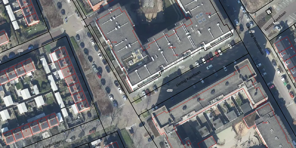 Het adres ligt op het perceel TIE00-D-7769, dat zich in de kadastrale gemeente Tiel bevindt. Het perceel is met 9636 m² relatief groot. Het gemiddelde ligt in de kadastrale gemeente Tiel op 1546,7 m². Het grootste perceel in de kadastrale gemeente is 26,3 ha. Het kleinste perceel heeft een oppervlakte van 0 m². Op het perceel zijn 200 adressen aanwezig. De huidige grenzen van het perceel zijn digitaal in de Basisregistratie Kadaster (BRK) geregistreerd op 25-06-2018.