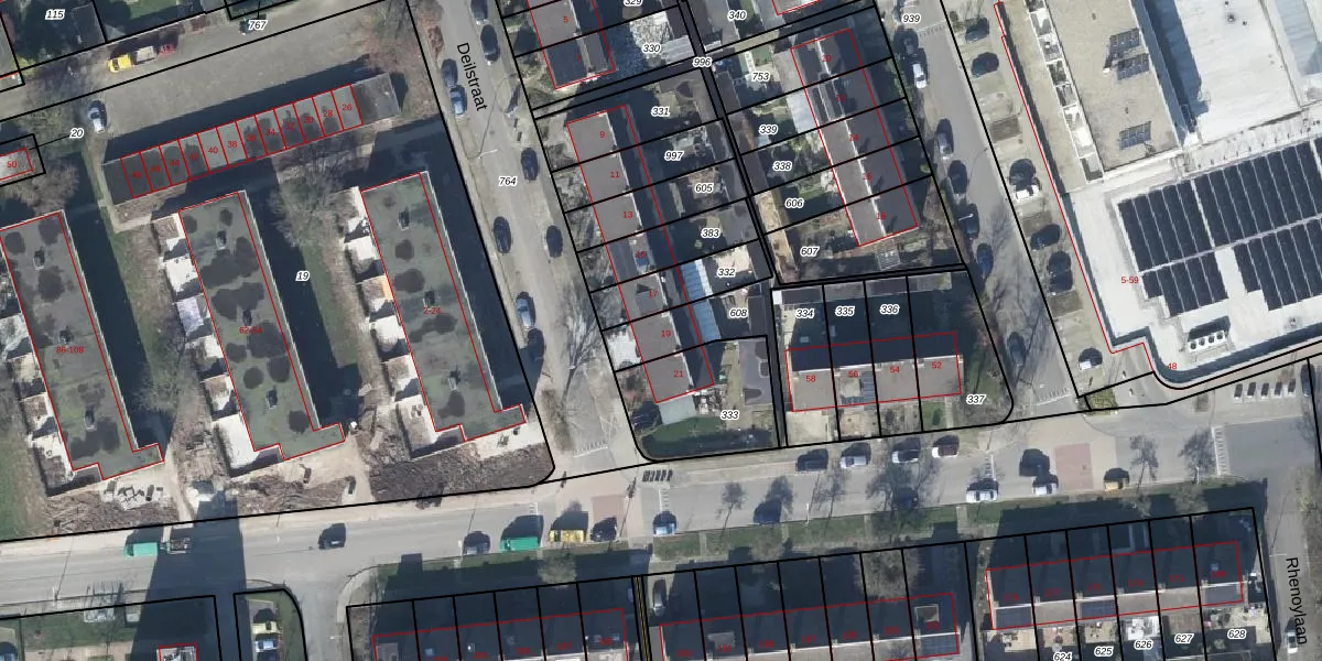 Gebruik de zoekbalk of klik op een perceel voor informatie over de adressen binnen dit perceel.