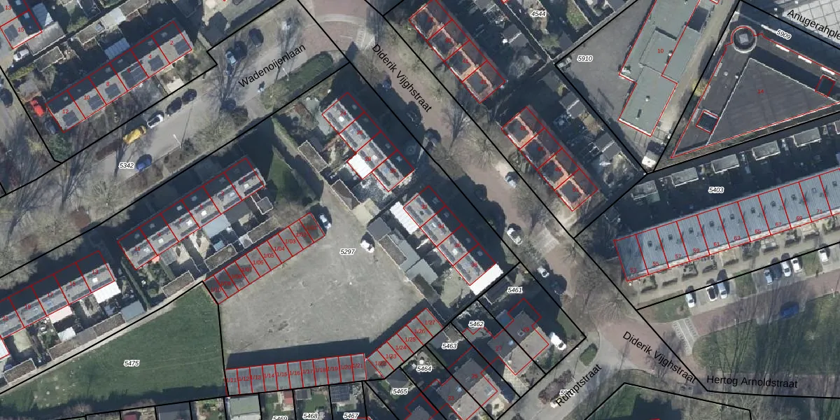 Diderik Vijghstraat 32 is gelegen op kadastraal perceel TIE00D5297. Deze kadastrale aanduiding is uniek en wordt gebruikt door het Kadaster om eigendomsrechten en andere zakelijke rechten vast te leggen. Het perceel maakt onderdeel uit van de kadastrale gemeente Tiel.