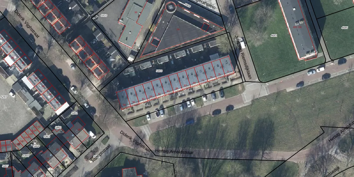 Het perceel waarop Diderik Vijghstraat 65 staat heeft een oppervlakte van 2137 m². Dit is een zeer groot perceel. De perceeloppervlakte wordt geregistreerd door het Kadaster. Gedetailleerde informatie over de maten van dit perceel kunt u vinden in het rapport Kadastrale kaart met maatvoering van Diderik Vijghstraat 65.