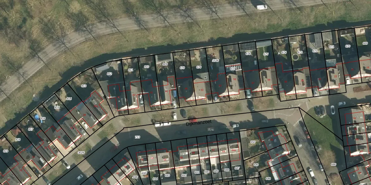 Het perceel waarop Dijkmanzoet 49 staat heeft een oppervlakte van 270 m². Dit is een middelgroot perceel. De perceeloppervlakte wordt geregistreerd door het Kadaster. Gedetailleerde informatie over de maten van dit perceel kunt u vinden in het rapport Kadastrale kaart met maatvoering van Dijkmanzoet 49.