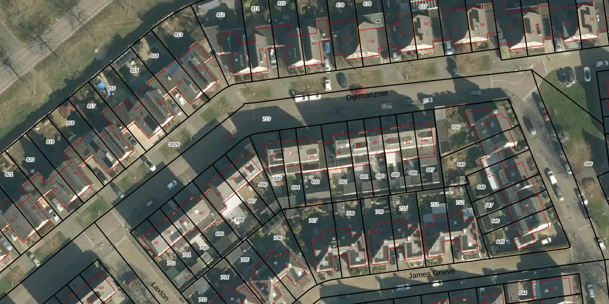 Het perceel waarop Dijkmanzoet 54 staat heeft een oppervlakte van 221 m². Dit is een middelgroot perceel. De perceeloppervlakte wordt geregistreerd door het Kadaster. Gedetailleerde informatie over de maten van dit perceel kunt u vinden in het rapport Kadastrale kaart met maatvoering van Dijkmanzoet 54.