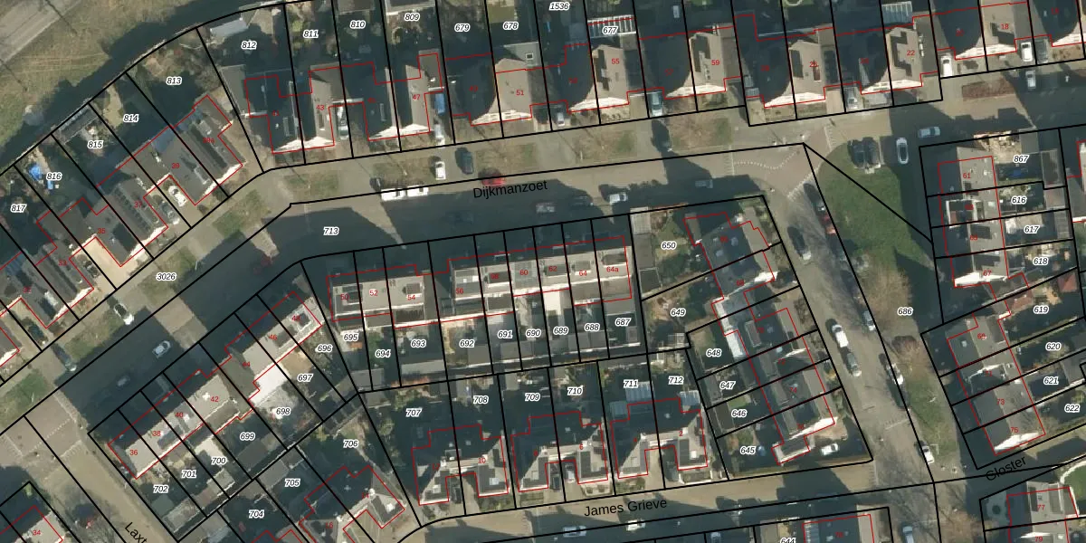 Het perceel waarop Dijkmanzoet 62 staat heeft een oppervlakte van 140 m². Dit is een middelgroot perceel. De perceeloppervlakte wordt geregistreerd door het Kadaster. Gedetailleerde informatie over de maten van dit perceel kunt u vinden in het rapport Kadastrale kaart met maatvoering van Dijkmanzoet 62.