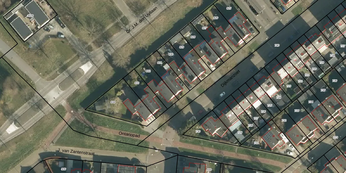 Het perceel waarop Dijkmanzoet 7 staat heeft een oppervlakte van 253 m². Dit is een middelgroot perceel. De perceeloppervlakte wordt geregistreerd door het Kadaster. Gedetailleerde informatie over de maten van dit perceel kunt u vinden in het rapport Kadastrale kaart met maatvoering van Dijkmanzoet 7.